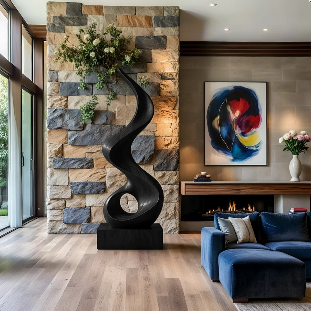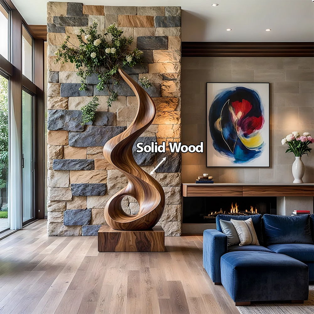 Carved entirely from Natural Solid Wood, this tall sculptural form rises in an elegant twisted motion, celebrating balance, harmony, and the expressive beauty of natural grain. The flowing silhouette transforms raw timber into a striking art piece that elevates contemporary interiors with an unmistakable handcrafted presence.