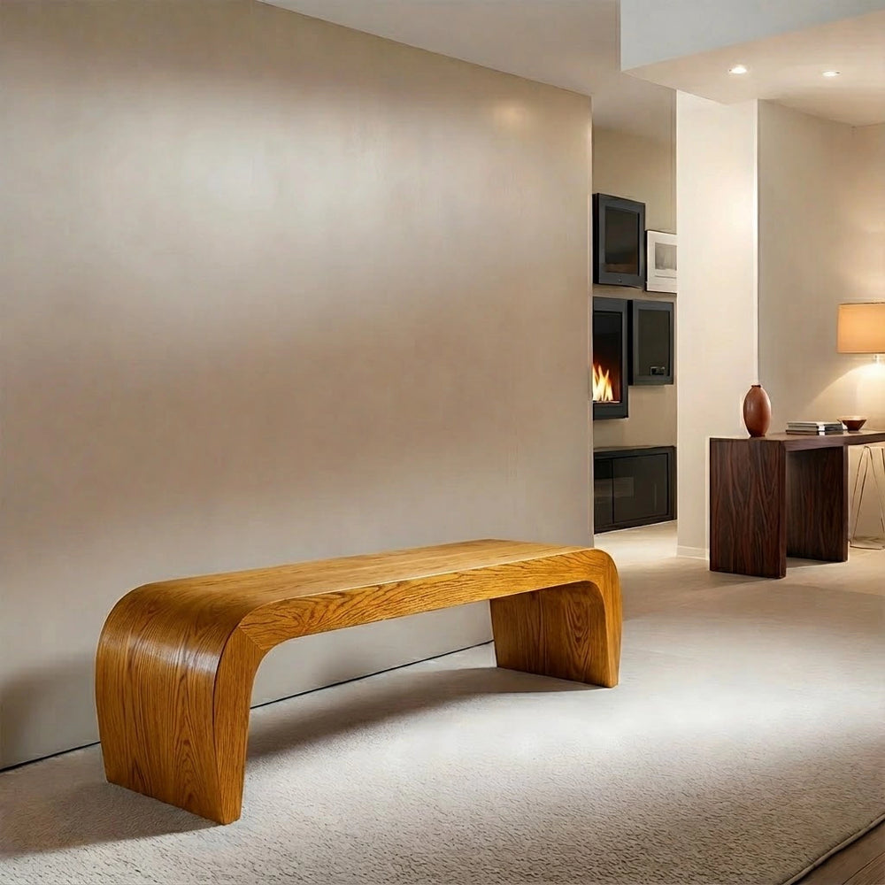 Carved from Natural Solid Wood, this bench embodies quiet elegance through its seamless curved silhouette. The continuous arc design captures the harmony of modern minimalism, creating a refined focal point for hallways, living rooms, and curated interior spaces.