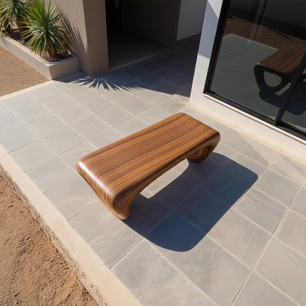 Light slides across the curved surfaces, casting soft shifting shadows that change throughout the day. The bench becomes a quiet place to pause, a design statement that elevates the ambiance of any room with serenity and sculptural presence.