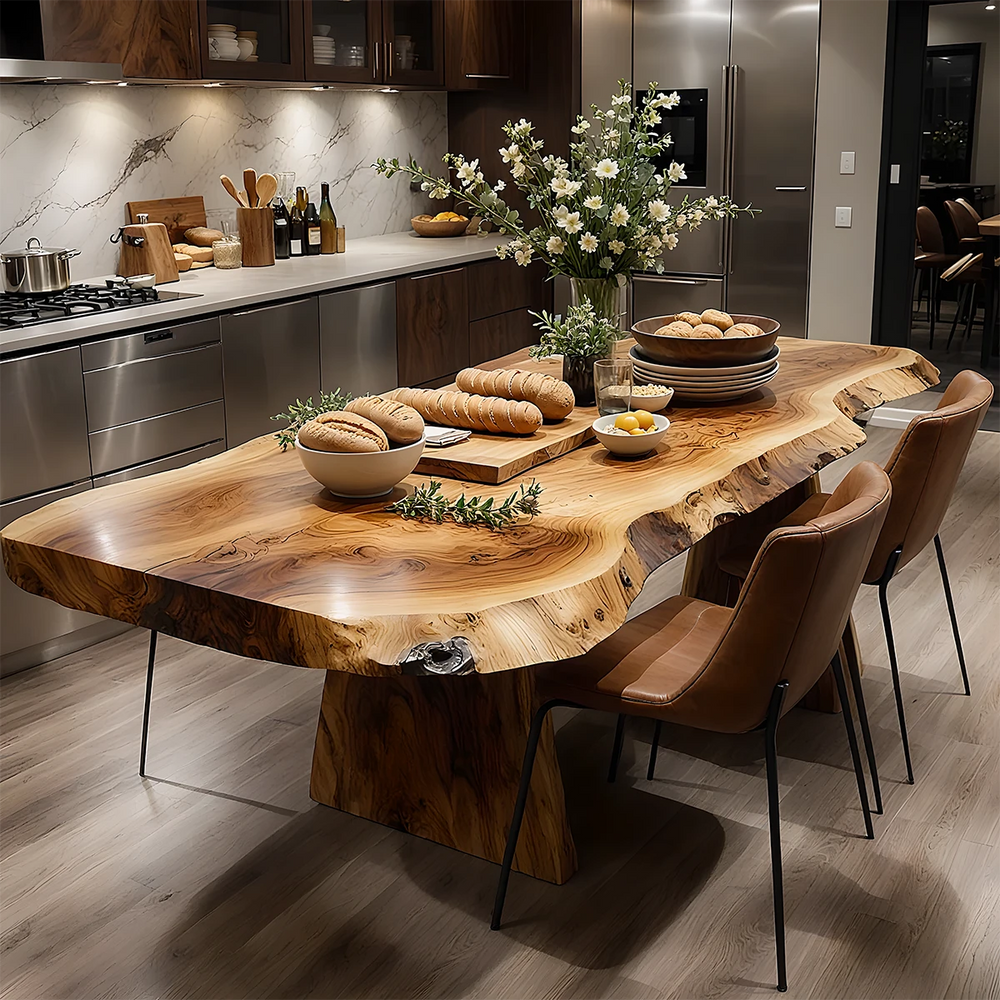 Natural Solid Wood Live-Edge Dining Table