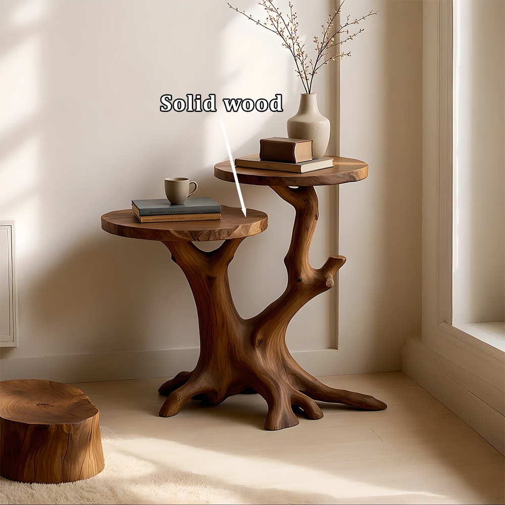 Solid Wood Accent Table – Modern Sculptural Branchform Twin Design