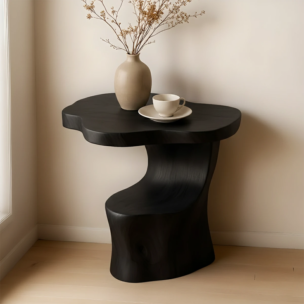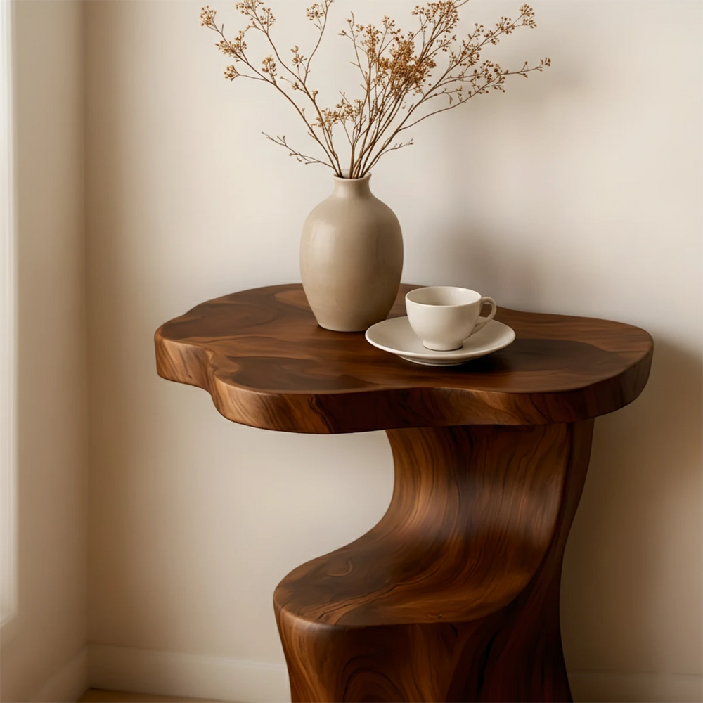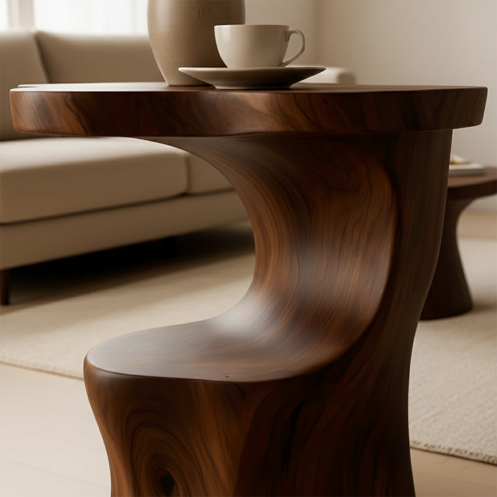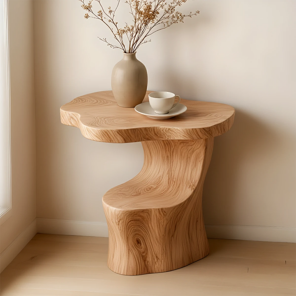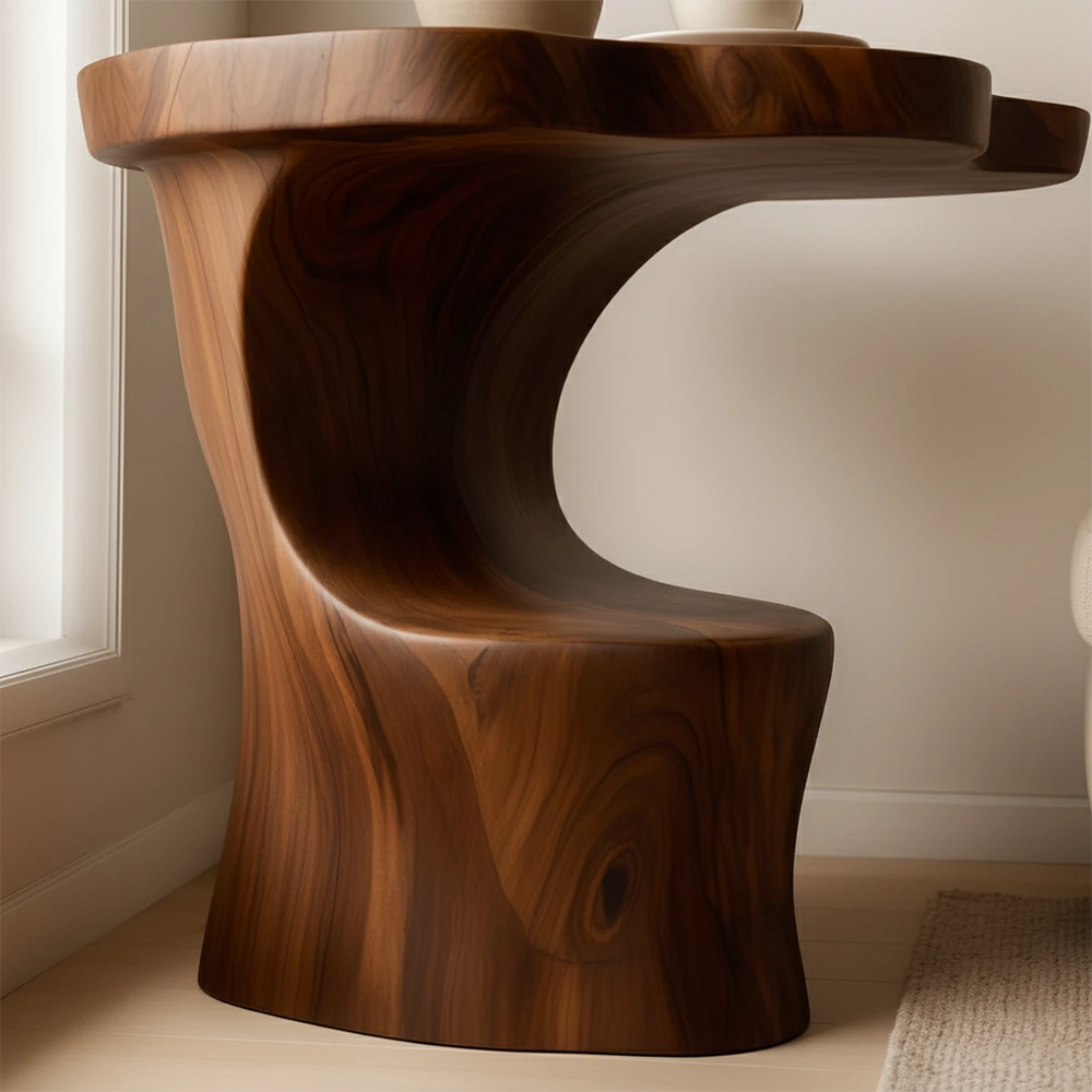 Solid Wood Accent Table – Modern Sculptural Flowform