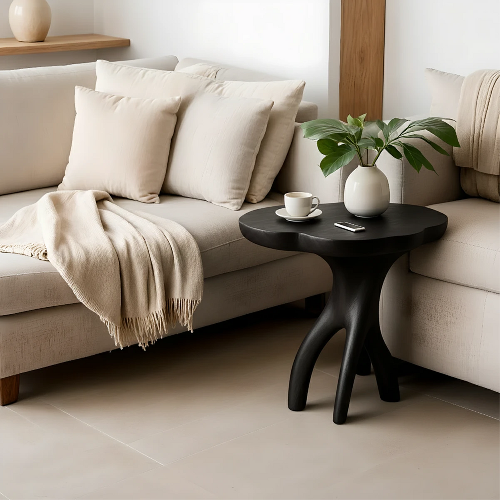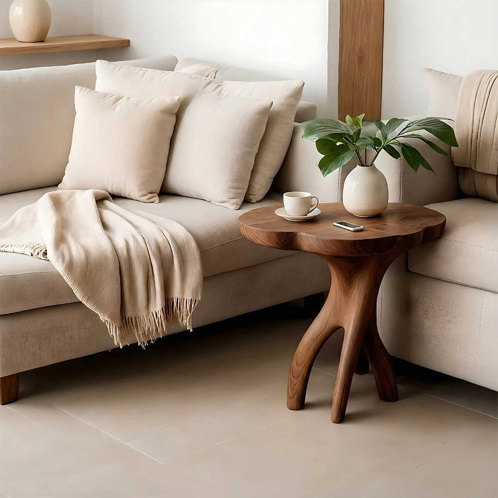 Solid Wood Accent Table – Modern Sculptural Tri-Branch Design