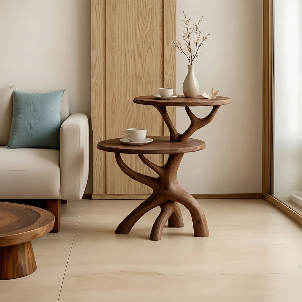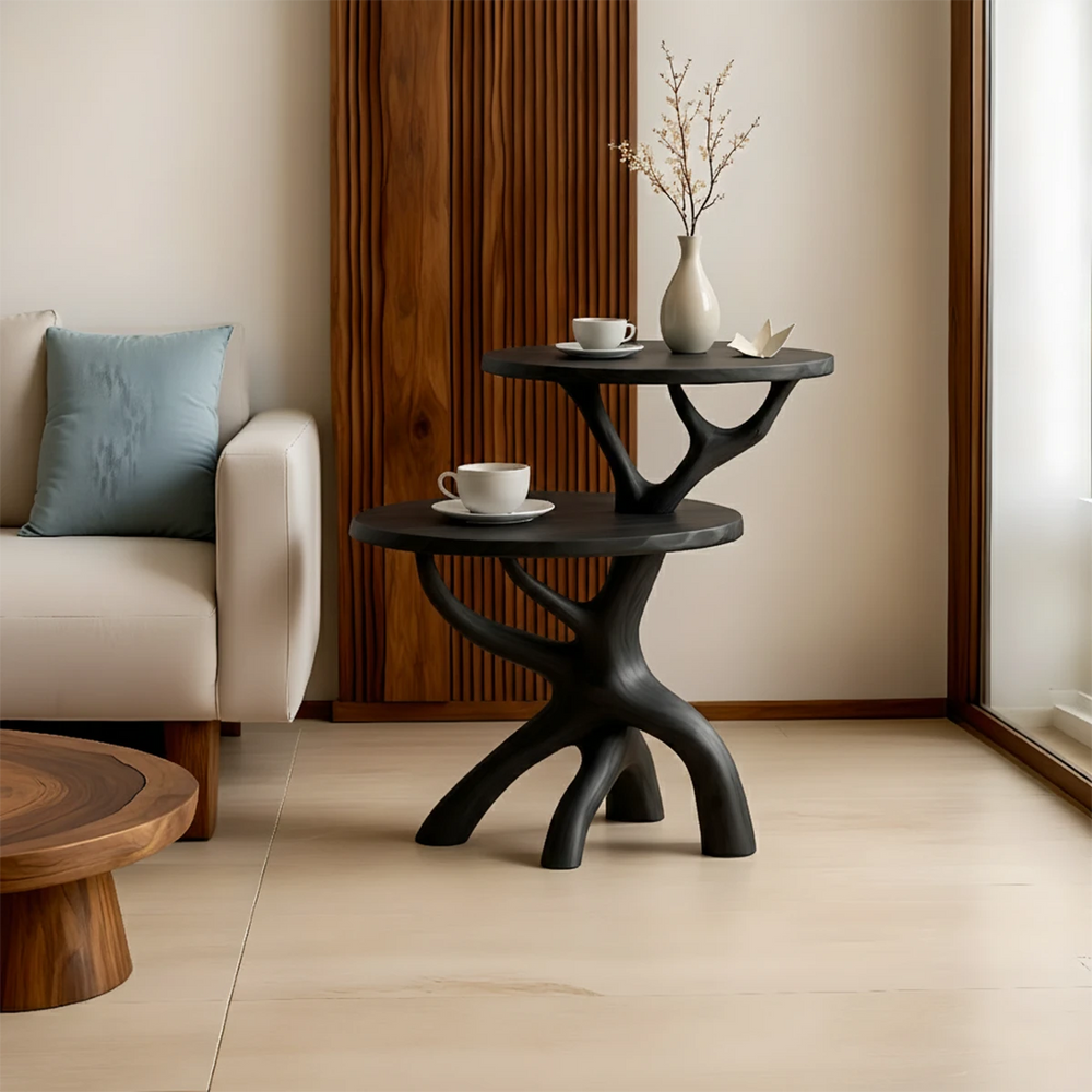 Solid Wood Accent Table Set – Modern Sculptural Branchform Design