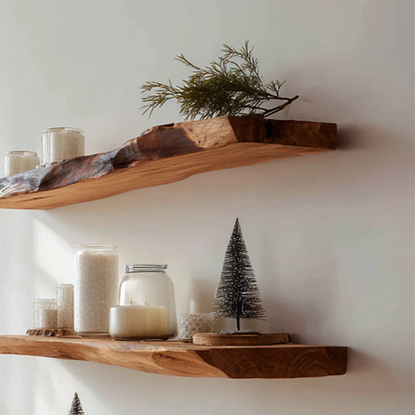 Regular price From $115.00Unit price /UnavailableLive Edge Natural Solid Wood Floating Shelves – Holiday Warmth Edition