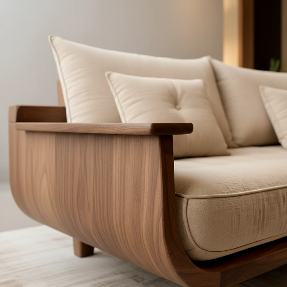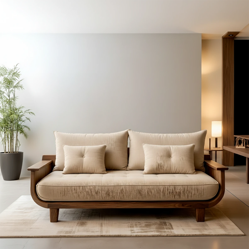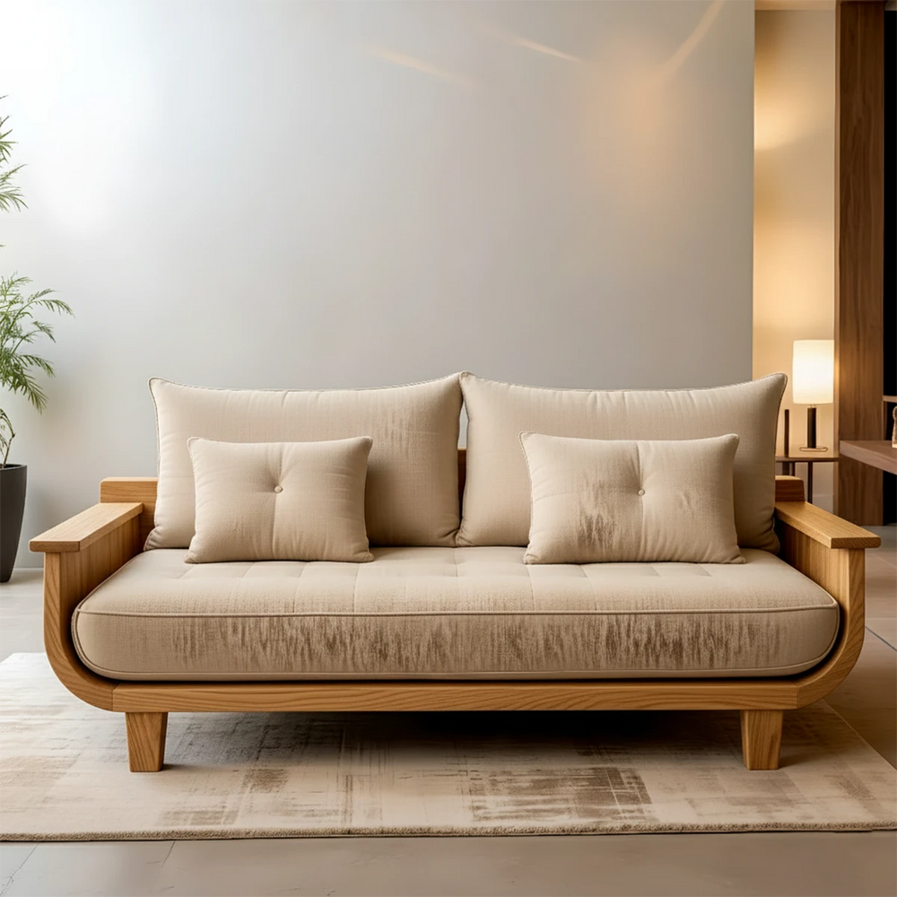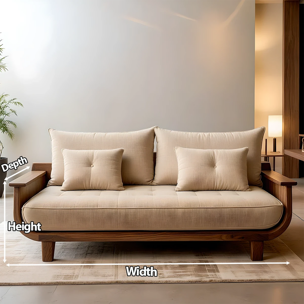 Solid Wood Sofa – Scandinavian Cotton Harmony