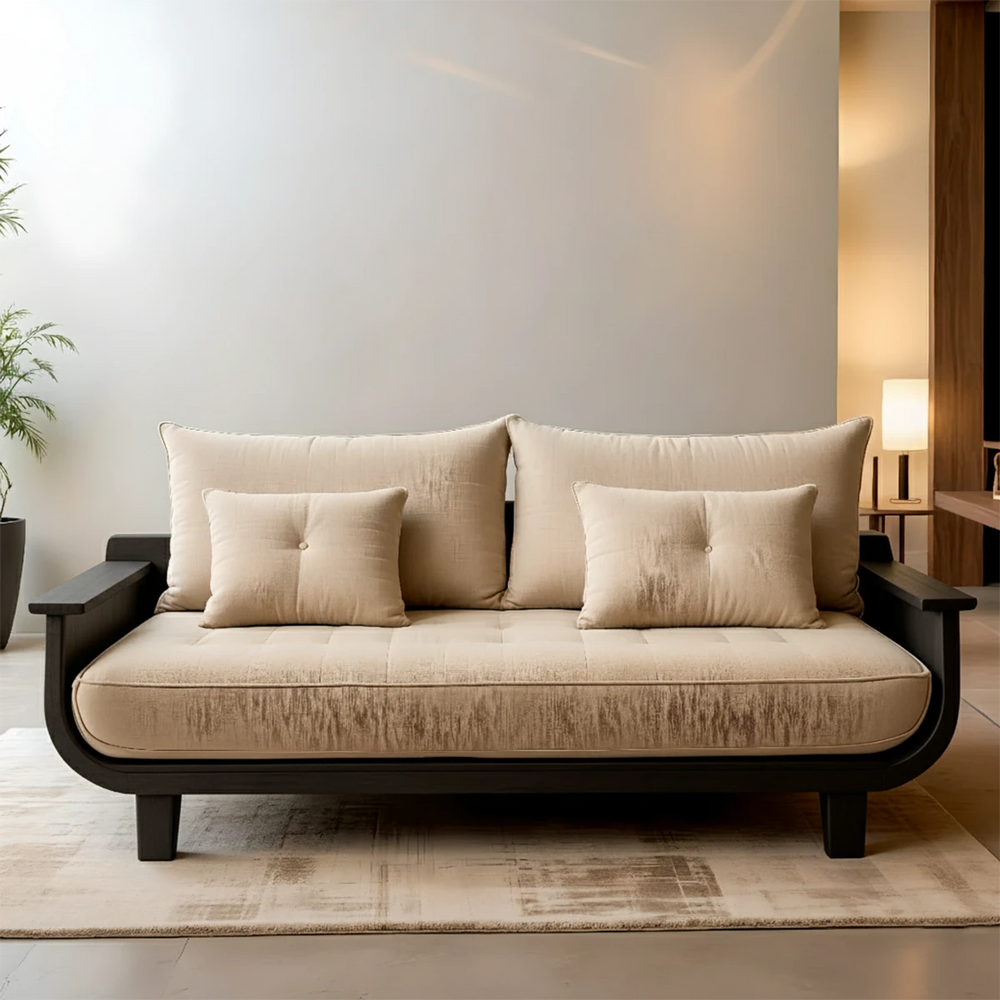 As natural light gently touches the cotton fabric and wooden grain, the sofa becomes an invitation to slow down and reconnect with moments of quiet living. Its soft materials, warm tones, and balanced proportions enrich daily rituals, making comfort feel intentional and beautifully understated.