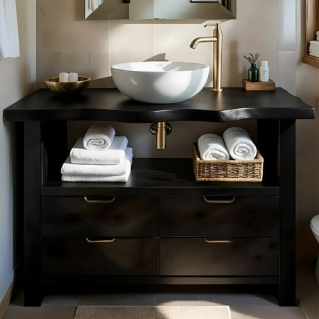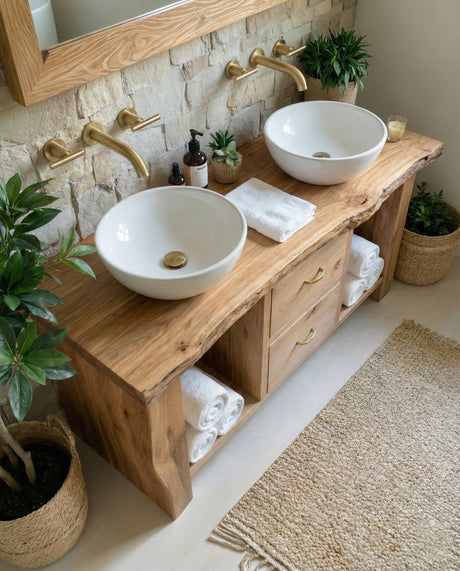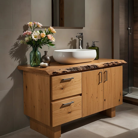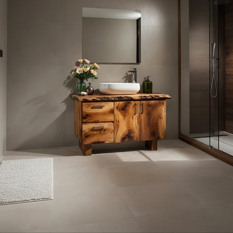 Handcrafted Natural Solid Wood Live-Edge Bathroom Vanity