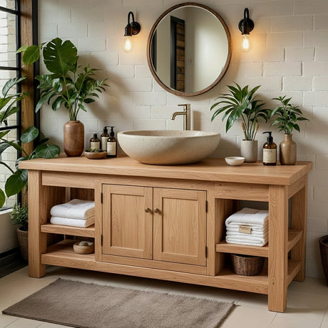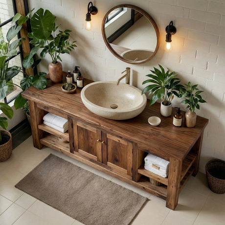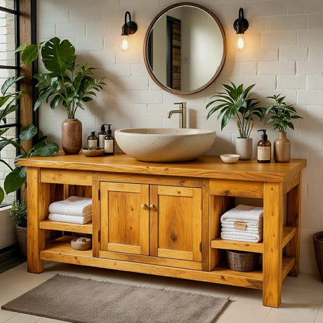 Natural Solid Wood Bathroom Vanity – Rustic Farmhouse Style