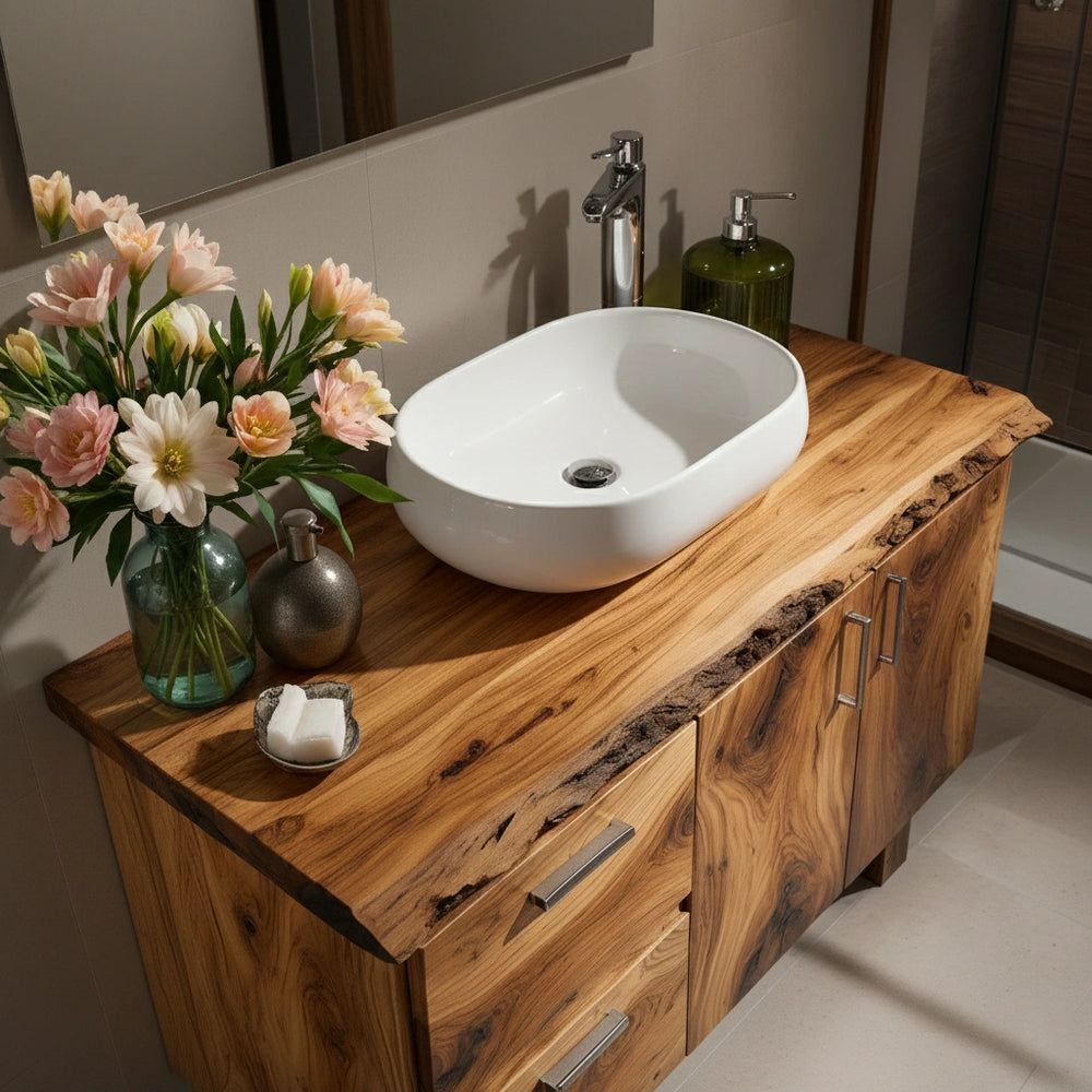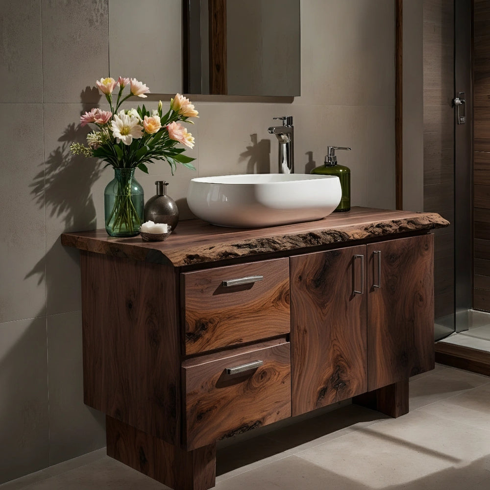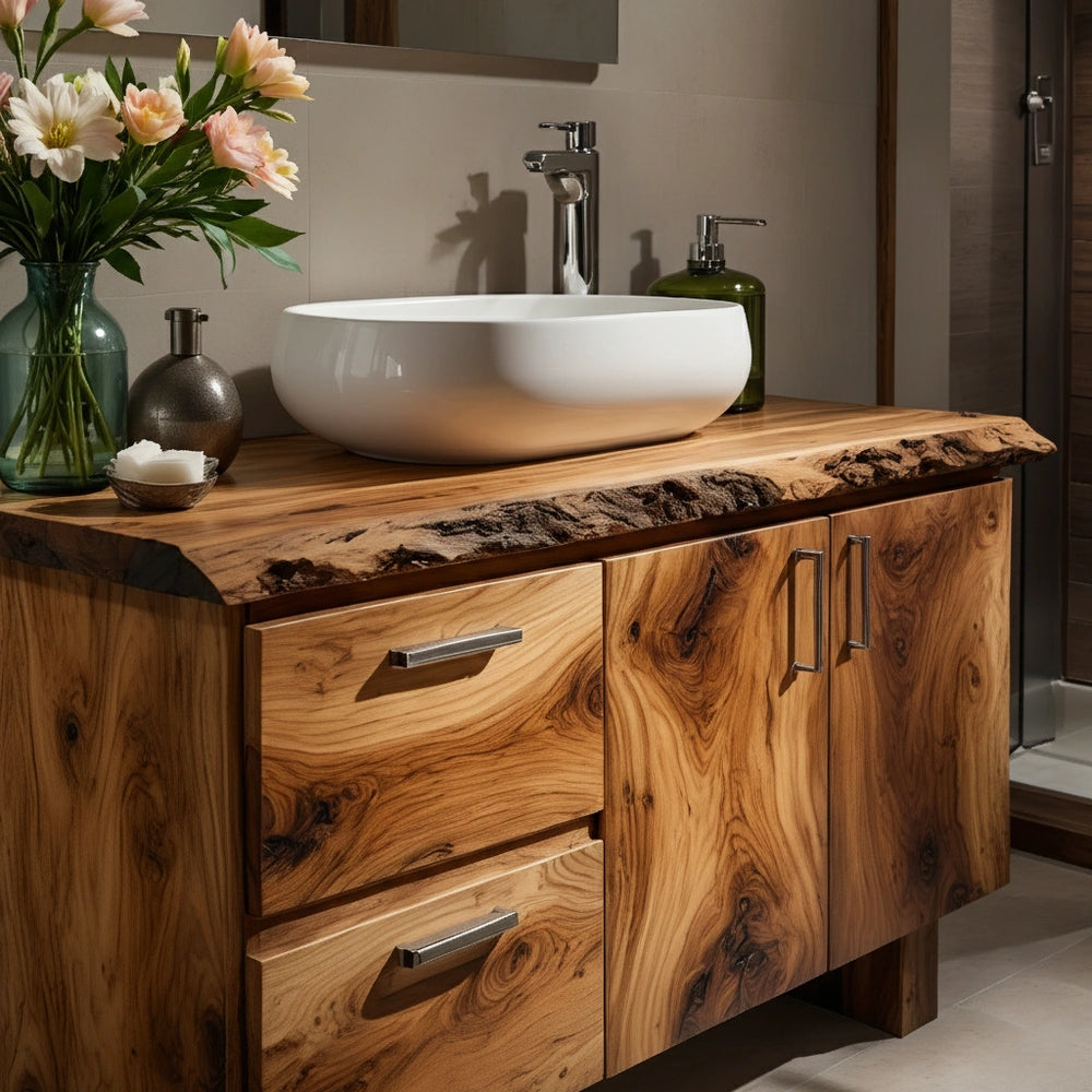 Handcrafted Natural Solid Wood Live-Edge Bathroom Vanity
