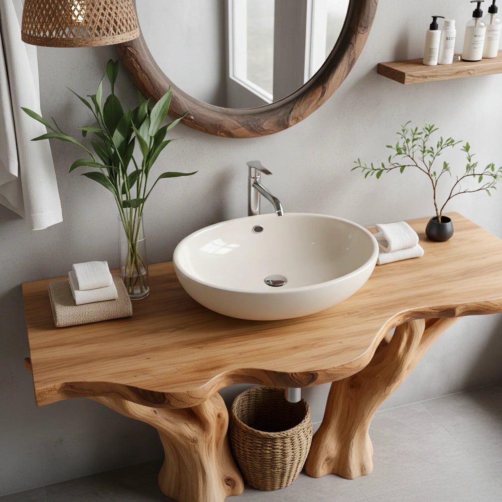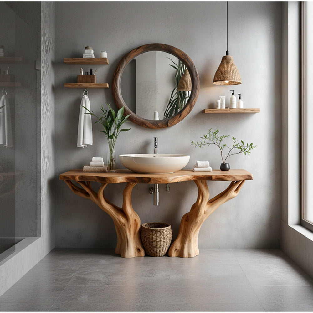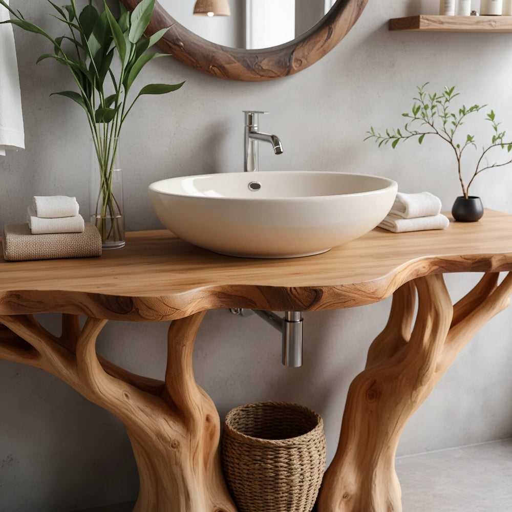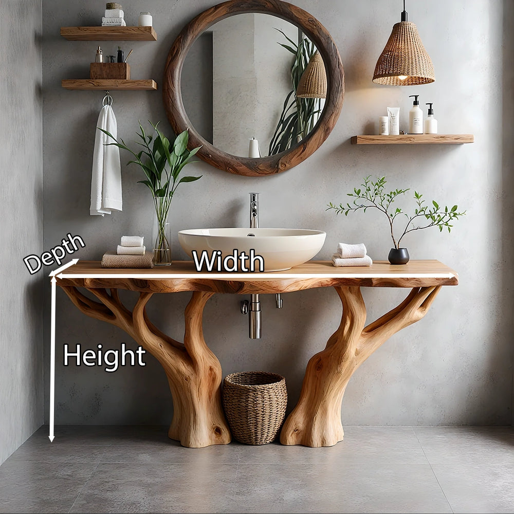 Natural Solid Wood Bathroom Vanity with Tree-Form Base