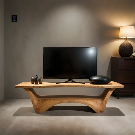 Sculpted Solid Wood TV Stand – Modern Curved Minimalist Design