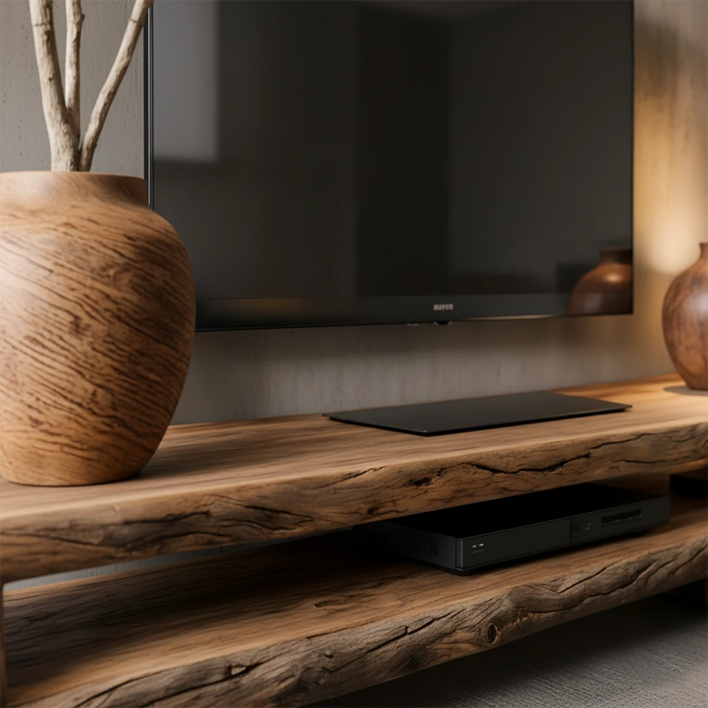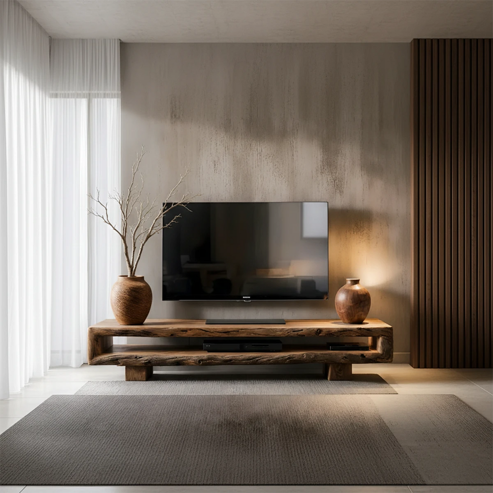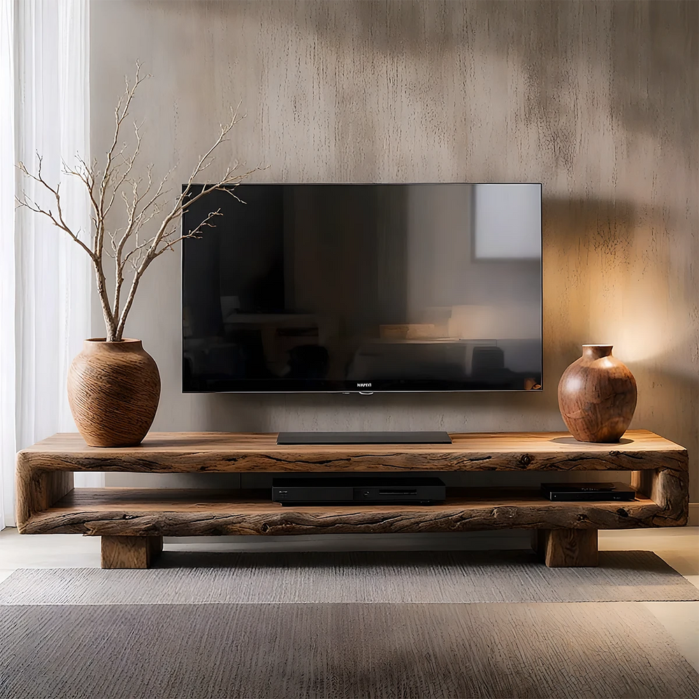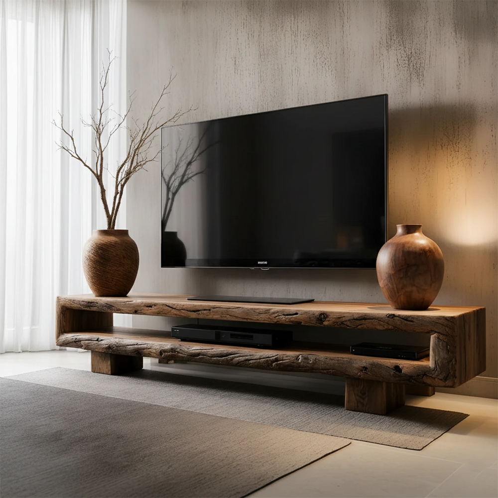 Designed to bring balance and warmth to contemporary spaces, this TV stand enriches your living room with natural texture and quiet sophistication—ideal for modern, minimalist, and wabi sabi interior styles.