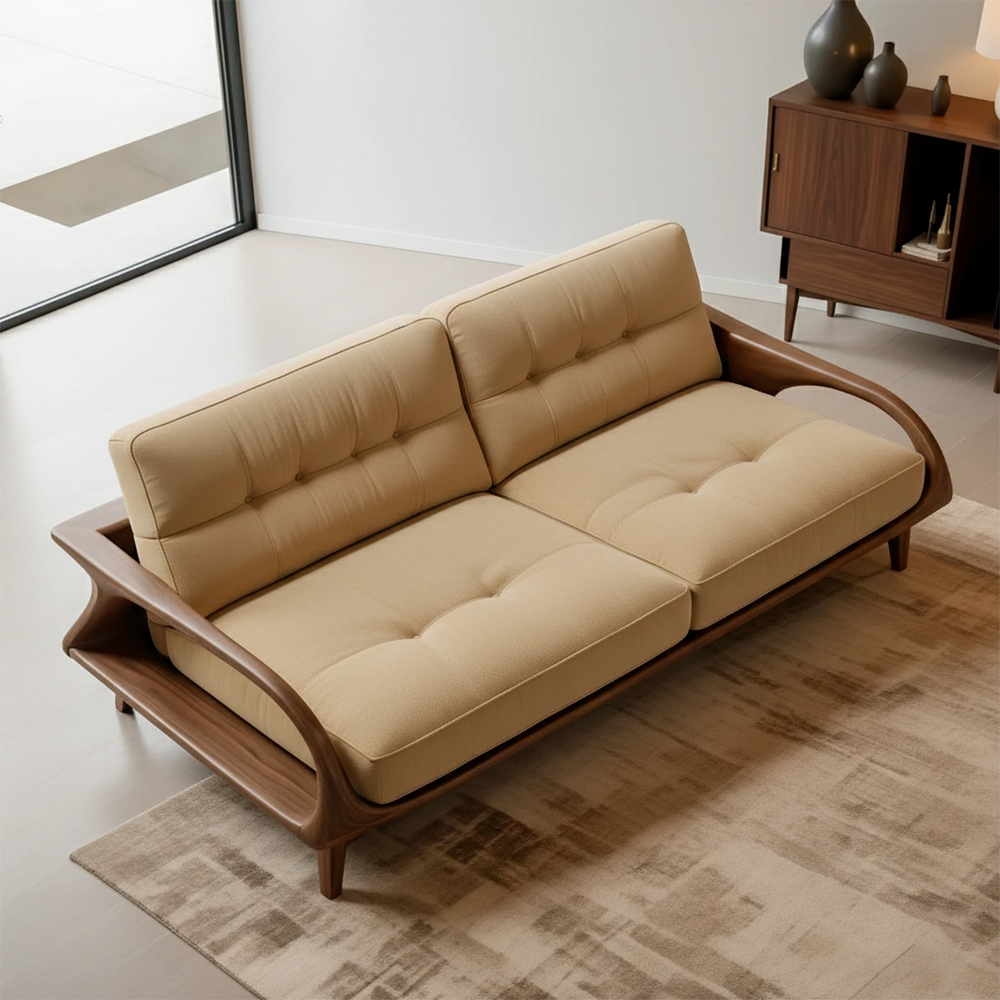 From morning calm to evening wind-down, this sofa becomes a grounding centerpiece. Its natural cotton surface encourages softness and warmth, while the solid wood frame brings stability and harmony to the room.