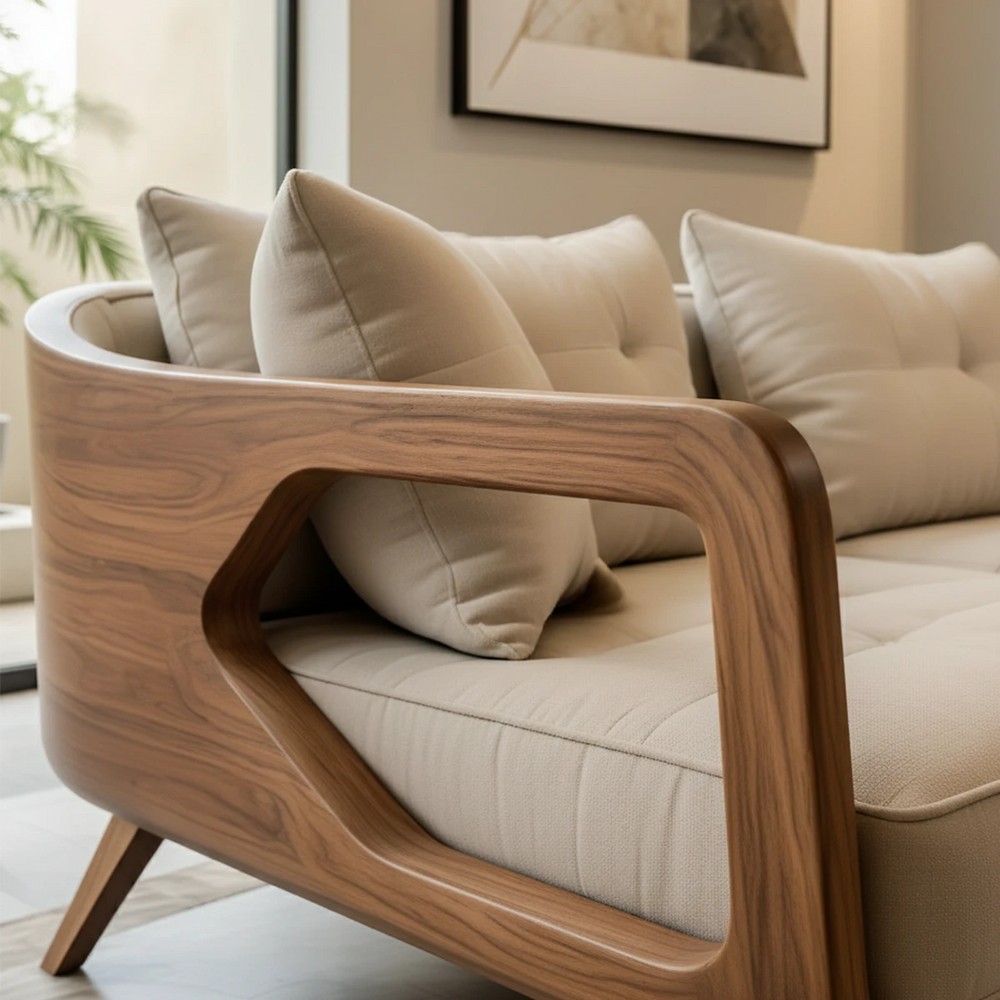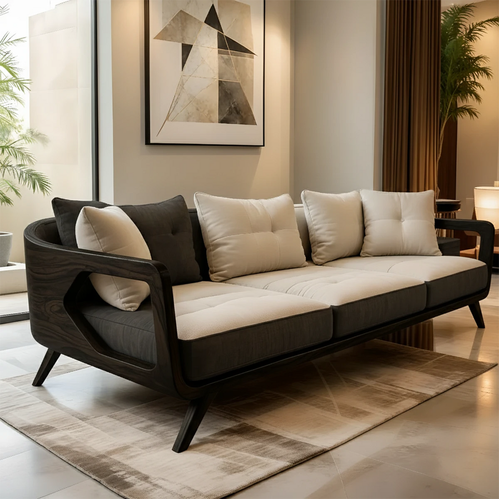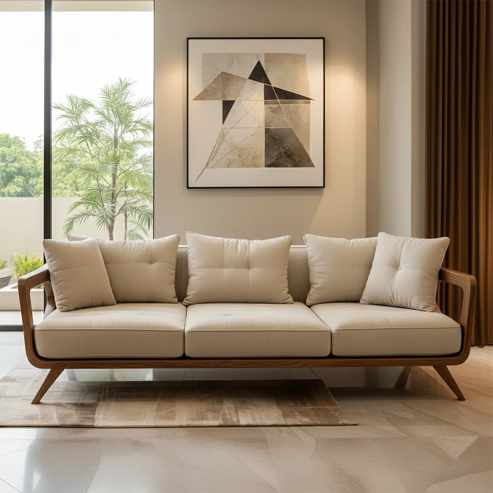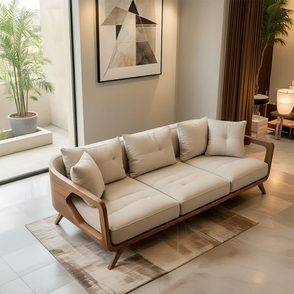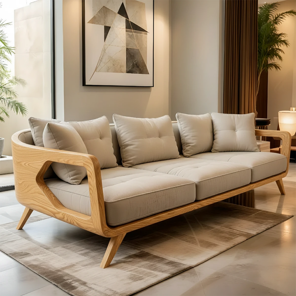 Handcrafted Solid Wood Cotton Sofa – Rustic Modern Seating