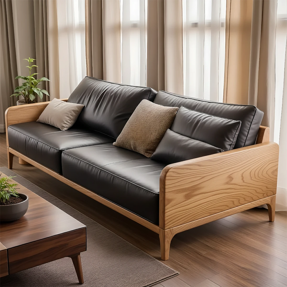 Handcrafted Solid Wood Leather Sofa – Premium Modern Design