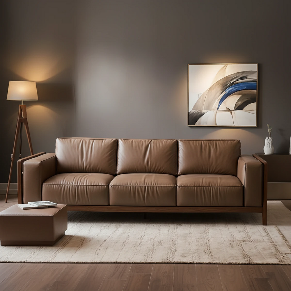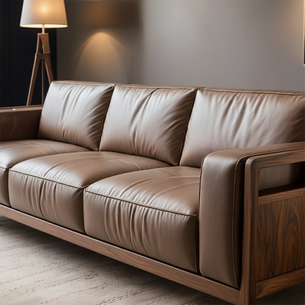 Premium Solid Wood Leather Sofa – Handcrafted Modern Design